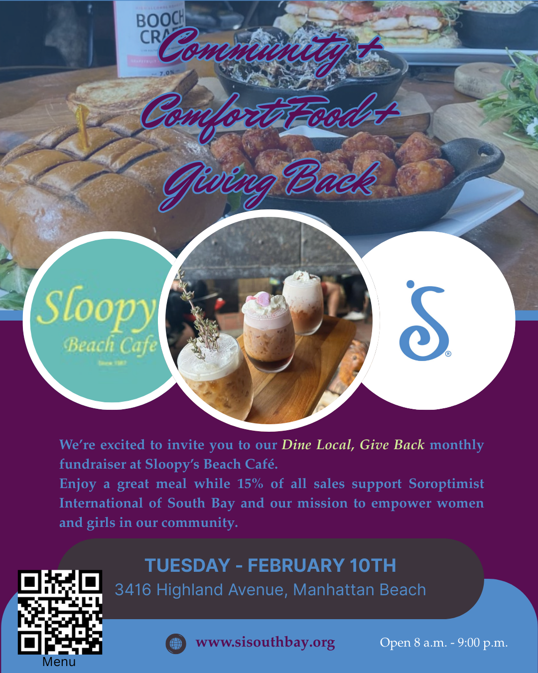When you dine at Sloopy’s Beach Café on the second Tuesday of the month, 15% of all sales are donated to SI South Bay, supporting our mission to empower women and girls right here in our community.